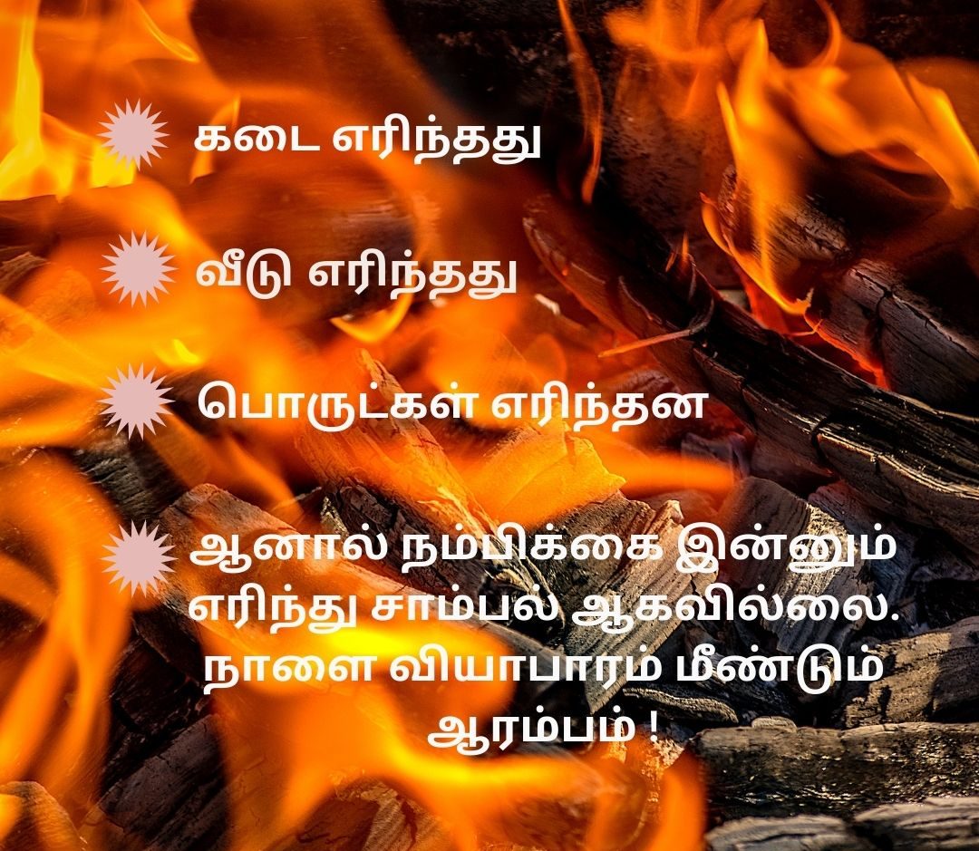 சிந்தனை ஊற்று பீனிக்ஸ் (Phoenix) by adminOctober 4, 2021October 2, 2021 சோமு தன் சொந்த உழைப்பால் வெற்றிகரமாக ஒரு மரச்சாமான் கடையை நடத்தி வந்தார். ஒரு முறை விடுமுறைக்காக வெளிநாட்டு சுற்றுப்பயணம் சென்று வந்திருந்தார். திரும்பி வந்தவருக்கு பேரதிர்ச்சி. கடை , வீடு என மொத்த பொருட்களும் தீ- க்கு இரையாகியிருந்தன. ஒரு கணம் யோசித்தவர் , அந்த சாம்பல் குவியலுக்கு முன் ஒரு பலகையைக் கட்டி தொங்கவிட்டார்: #சிந்தனைத் துளிநீங்கள் மனதளவில் எவ்வளவு திடமானவர்?உங்களின் பொறுமைக்கும் பலத்திற்கும் உள்ள அளவுகோல் என்ன?நீங்கள் நம்பிக்கை இழக்க எது காரணமாகிறது? Please leave this field emptyLET’S KEEP IN TOUCH! We’d love to keep you updated with the latest posts and stories We don’t spam! Read our privacy policy for more info. Check your inbox or spam folder to confirm your subscription.